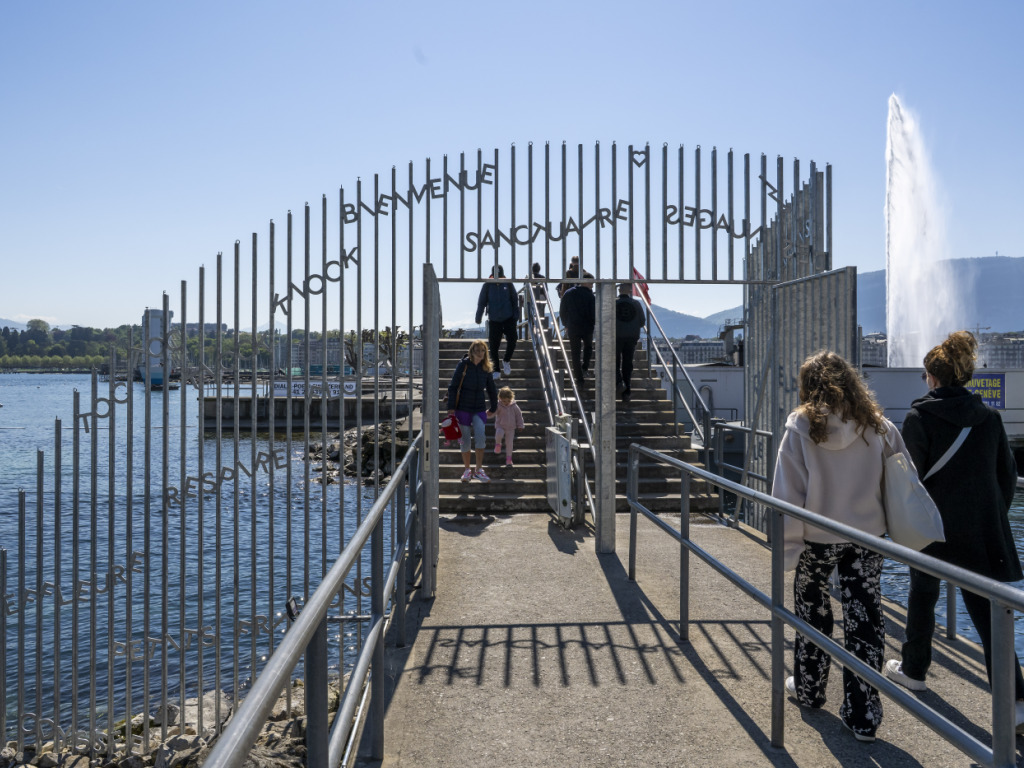 "Même si c'est un portail dont le but est de fermer l'accès au site pendant la nuit, on voulait une oeuvre poétique", a relevé jeudi Eric Vanoncini, président de l'Association d'usagères.ers.x des Bains des Pâquis (AUBP). L'oeuvre, qui a été installée en février dernier, est née au terme d'un processus participatif qui a duré plus de cinq ans.