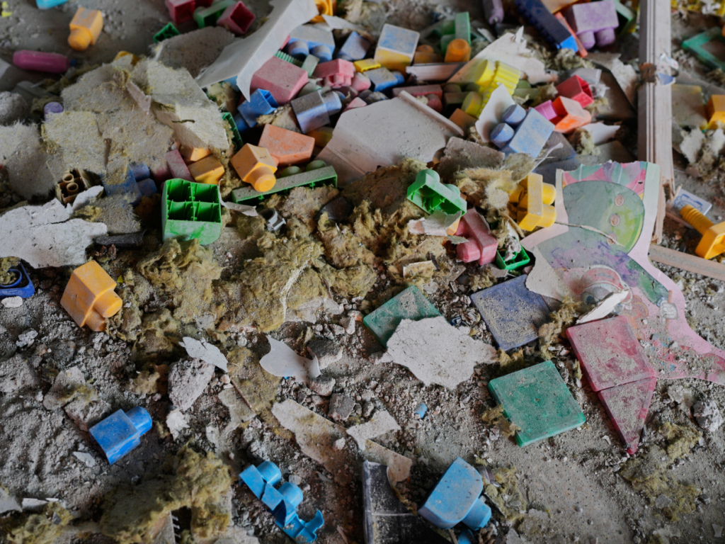 Débris de toutes sortes, arbres sectionnés, blocs de bétons jonchent le site aux allures de champ de bataille.