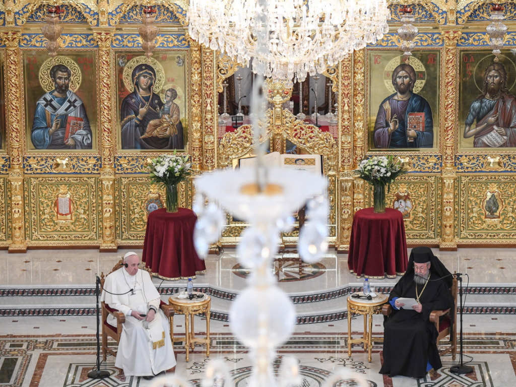"Les poisons du monde nous ont contaminés, la graine de la suspicion a accru notre distance et nous avons cessé de cultiver la communion", a-t-il déploré devant l'archevêque de l'Eglise orthodoxe de Grèce Hiéronyme II, avec lequel il a ensuite échangé des cadeaux dans une ambiance cordiale.